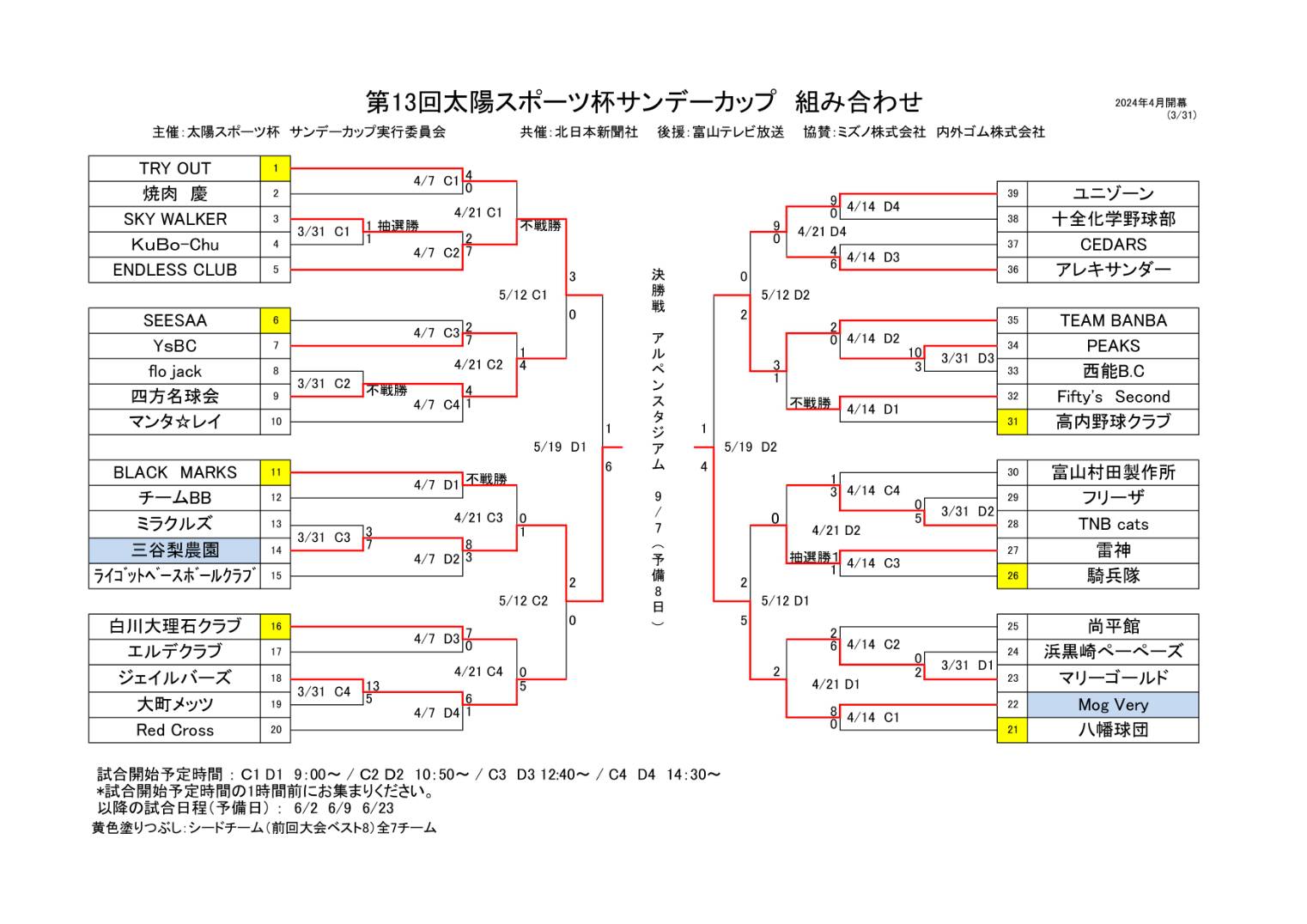 | 14日 | 日 | 第22回富山県IT杯 予選リーグ | 四方名球会 | 1-9 | 勝利 | Go! | |