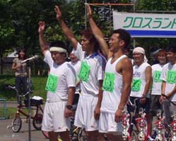 3人のライダーが交替で5時間走り、周回数を競うレースです。
