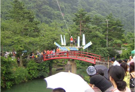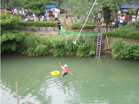丸太乗り大会に敗戦し悔しかったので、今度はターザンロープに挑戦っス。 |